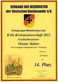 RAG-Bezirksmeisterschaft Großkaliberpistole 2013