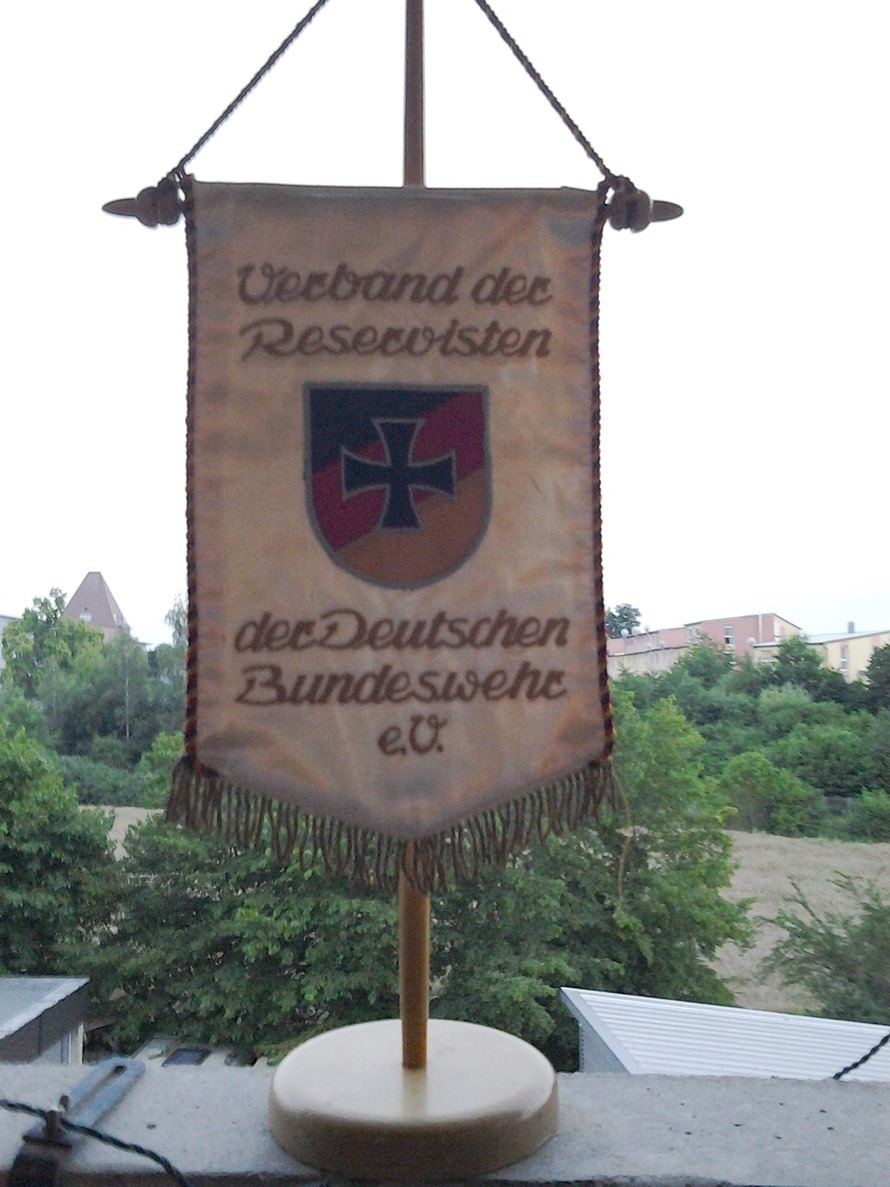 Dieses schöne gestickte Tischbanner wurde uns beim letzten RK-Abend am 26. Juli 2016 von unserem "dienstältesten" Kameraden Unteroffizier d.R. Otto Heller (seit 1971 Mitglied im Reservistenverband) übergeben.