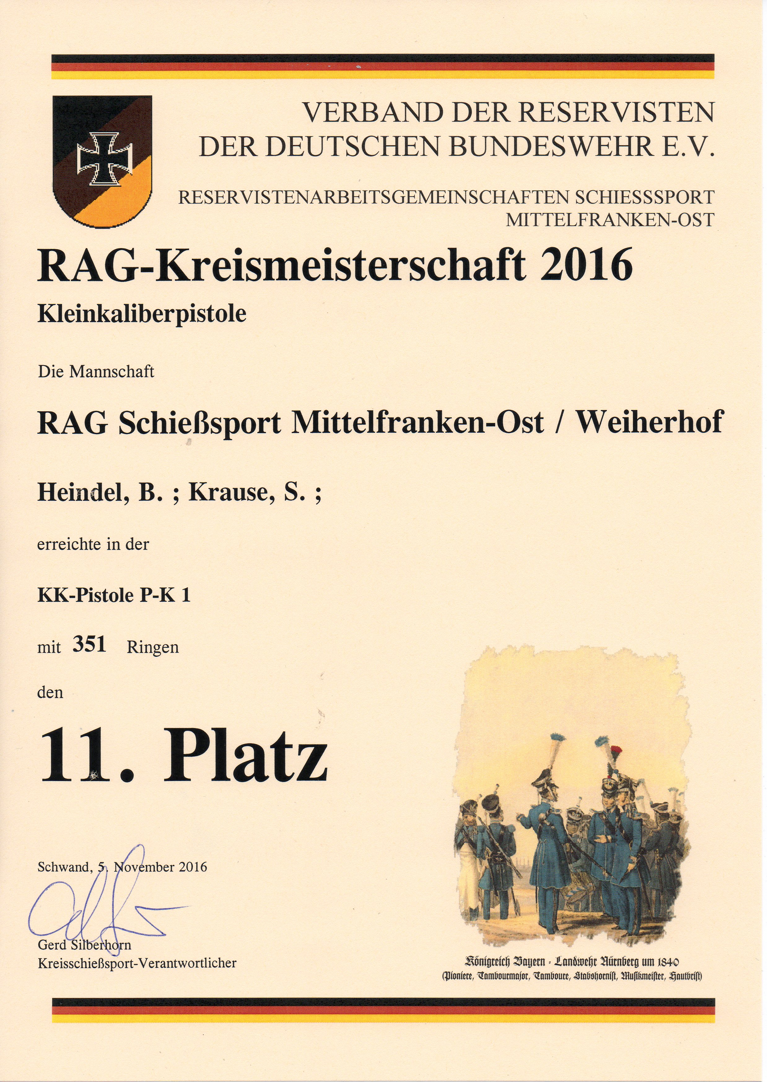 Als letzter Wettkampf auf Kreisebene in diesem Jahr fand am Samstag, 05.11.2016 in Schwand die diesjährige Kreismeisterschaft für Kleinkaliberpistole (Disziplin P-K 1) statt.